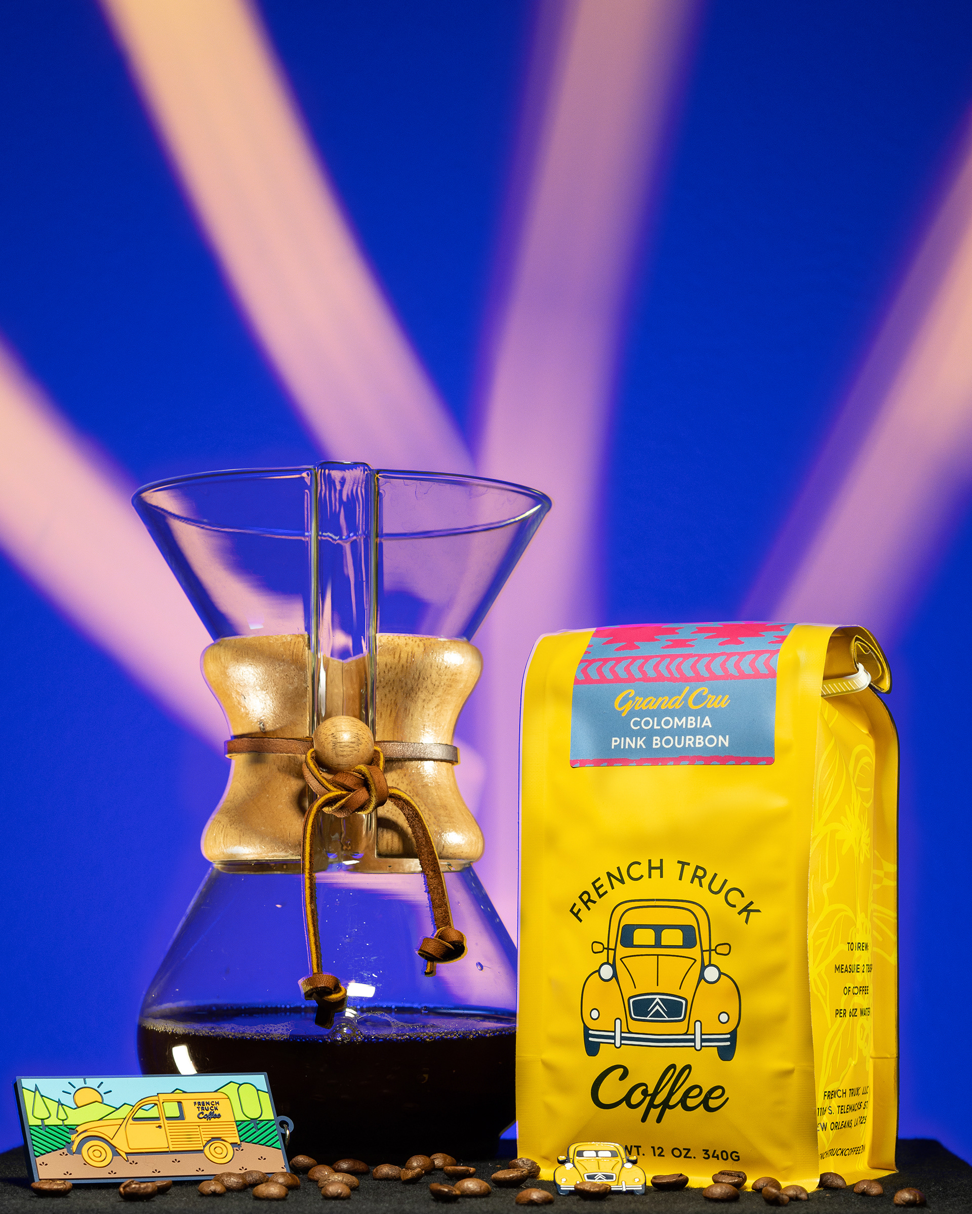 A feature of a select single origin coffee as well as promotional products from French Truck Coffee in New Orleans, Louisiana